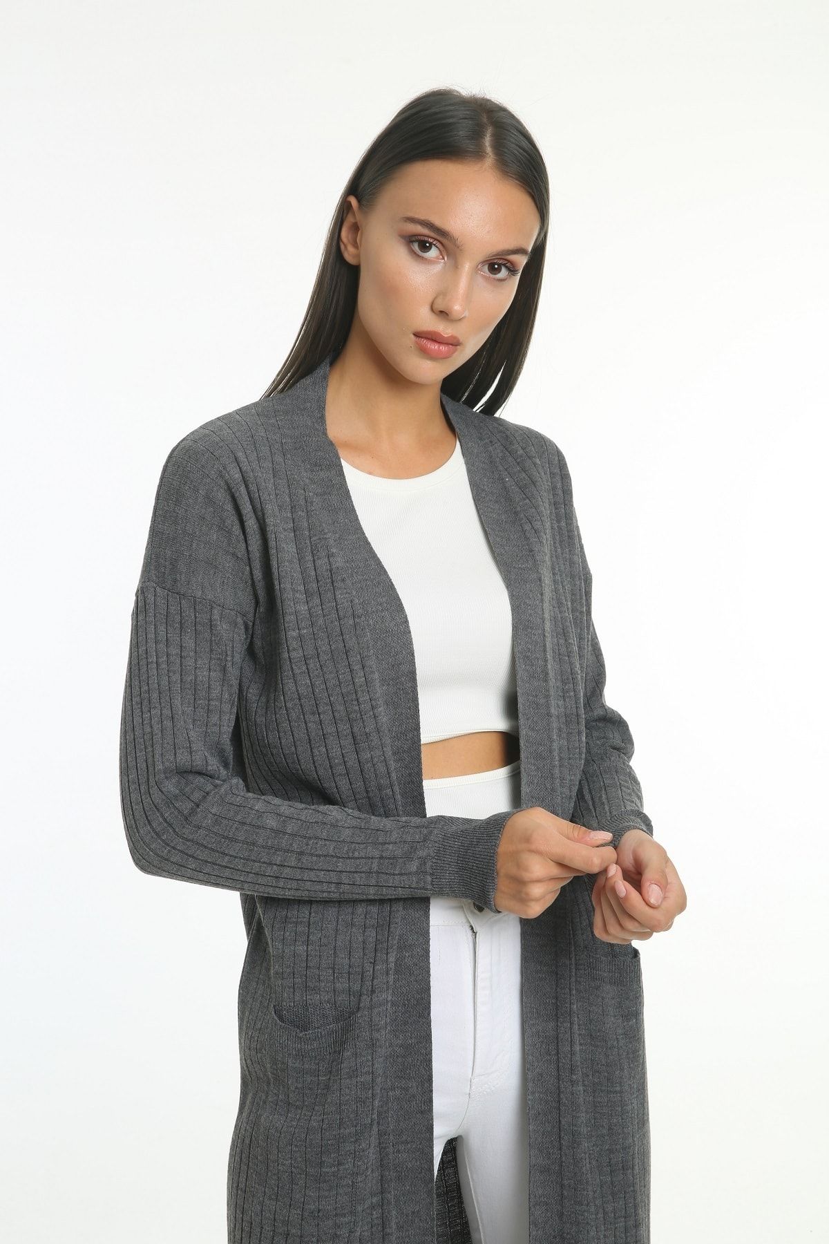 Kadın Anne Triko Cep detaylı Yün Hırka - füme