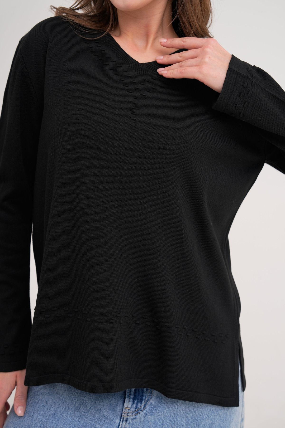 Fularlı Yumoş Kadın Triko Kazak - siyah