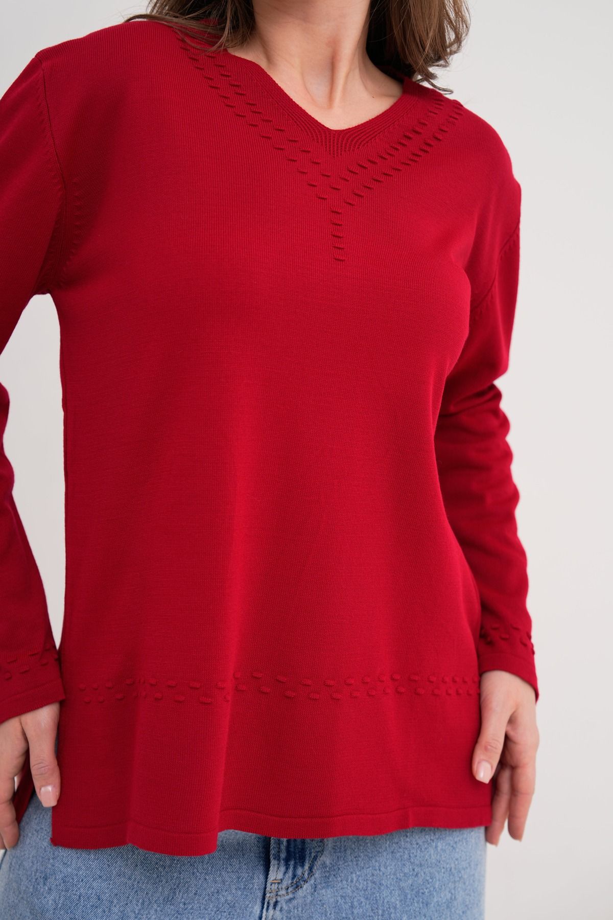 Triko İşlemeli Hırka - bordo