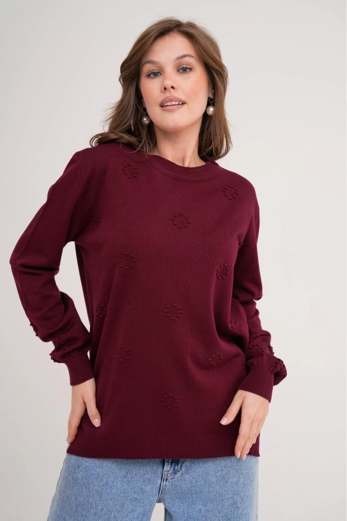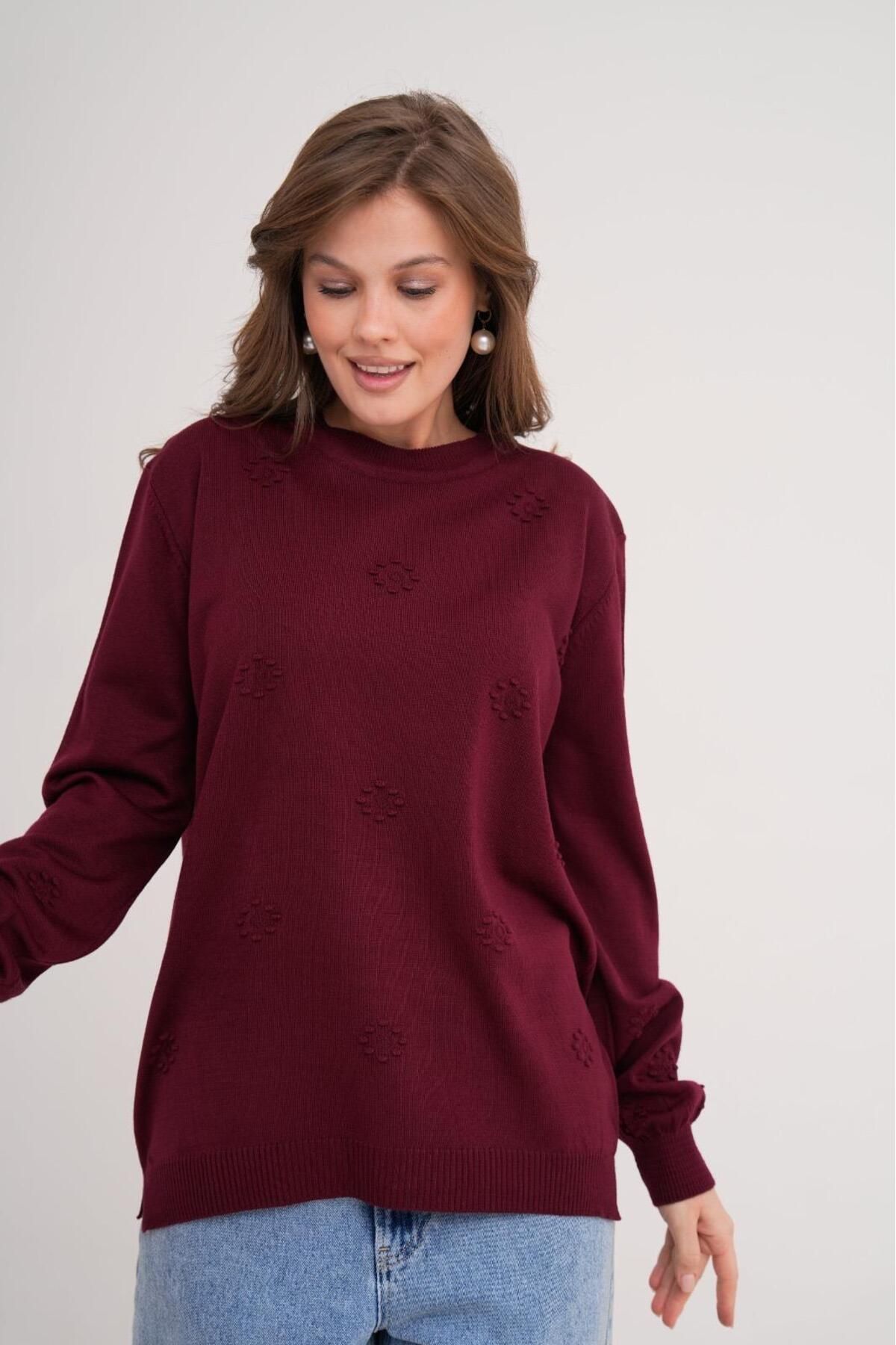 Her yaştan kadının gardırobuna uyum sağlayacak şekilde tasarlanmış, mevsimlik triko anne bluz ile her ortamda şıklığınızı koruyun.; Desenli tasarımı sayesinde göz alıcı bir görünüm sunarken, düz renkleriyle kolayca kombinlenebilirliği artırır.; Straight kalıp ile vücut hatlarınıza uyum sağlayan bu bluz, rahat hareket etme özgürlüğünüzü kısıtlamaz.; Bisiklet yakası sayesinde sade ve modern bir stil oluşturmanız için idealdir.; Standart boy kesimi ile farklı vücut tiplerine uygunluk gösterir; uzun boylu ya da kısa boylu olsun herkes için uygundur.; Triko kumaşı, yumuşak dokusuyla konforlu bir kullanım sunarken, tek plaka dokumasıyla dayanıklılığı artırır.; Yırtmaç detaylarıyla hem şık hem de pratik bir görünüm kazandırırken, hareket özgürlüğünüzden ödün vermezsiniz.; Uzun kolları sayesinde serin havalarda bile sizi sıcak tutarken, reglan kol tasarımı kollarınızın doğal kıvrımına uyum sağlayarak konforlu bir kullanım sunar.; Basic koleksiyonunun sadeliğiyle her zaman moda olan parçalardan Devamını Göster