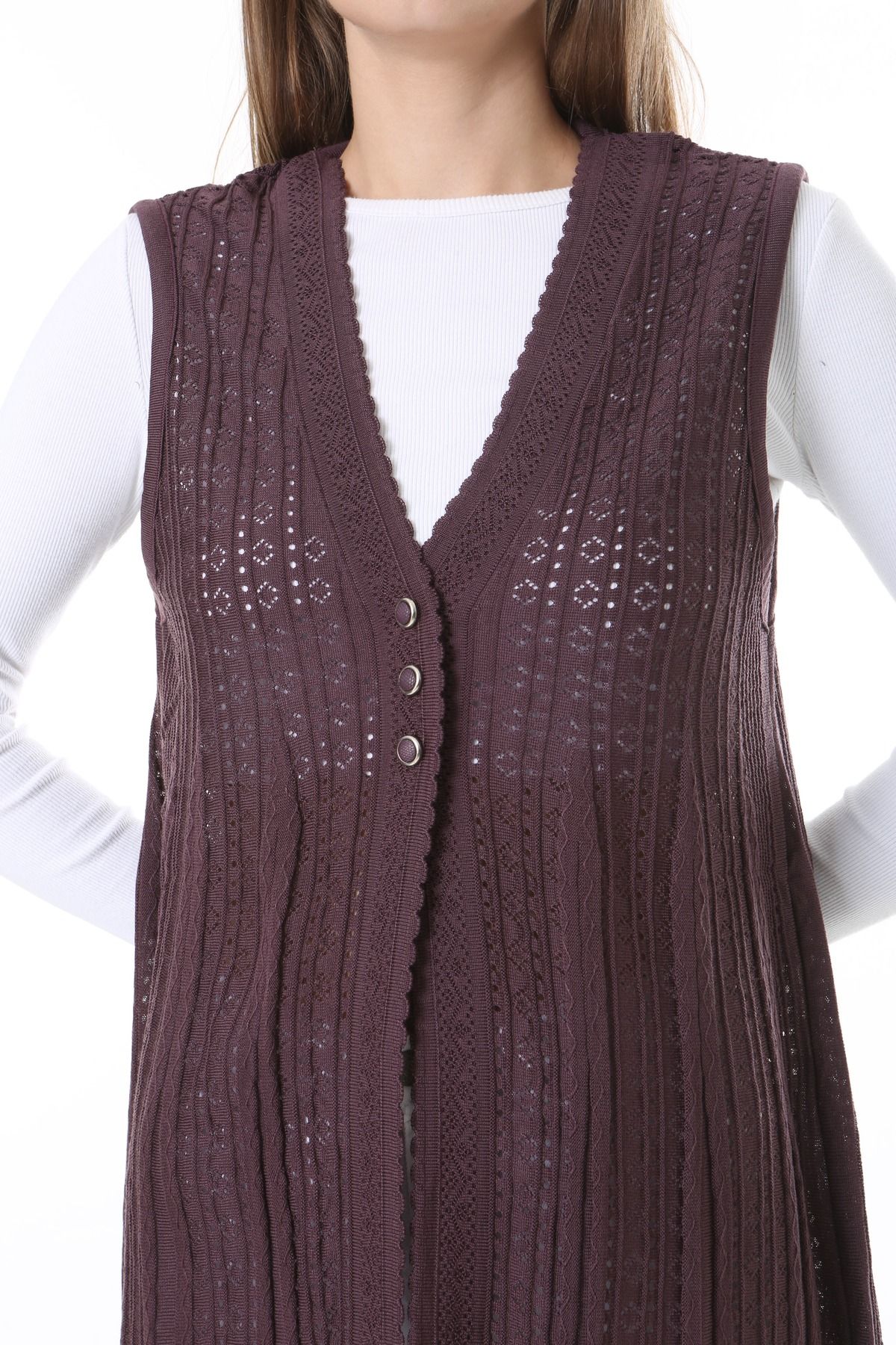 Triko Ajurlu Merserize Büyük Beden Uzun Yelek - mor