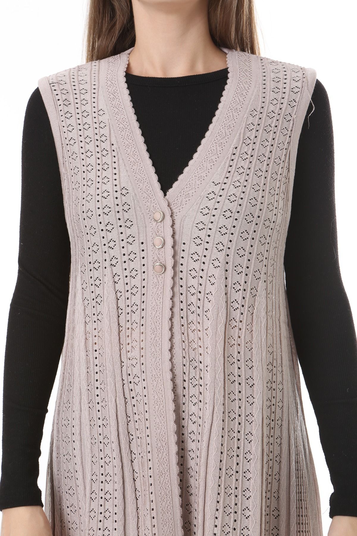 Kadın Mevsimlik Örgü Modelli Triko Yelek - krem